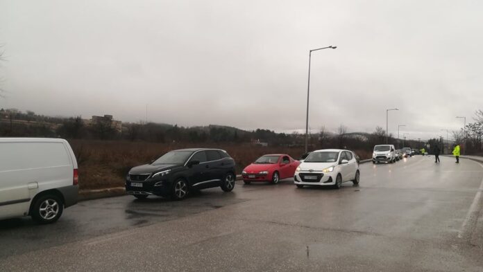 Εν μέσω βροχόπτωσης, εκατοντάδες οχήματα έφτασαν κορνάροντας έξω από το κτίριο της Περιφέρειας, όπου τριμελής αντιπροσωπεία συμμετεχόντων στην αυτοκινητοπομπή συναντήθηκε με τον περιφερειάρχη, Γεώργιο Κασαπίδη, και του επέδωσε το ψήφισμα με τα αιτήματα των φορέων.