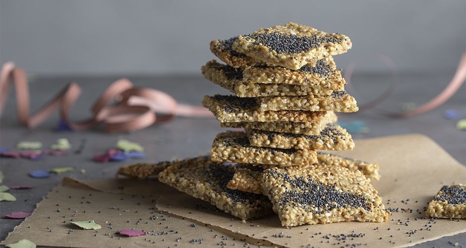 Ραντίζουμε με λίγο νερό και πασπαλίζουμε με παπαρουνόσπορο.
