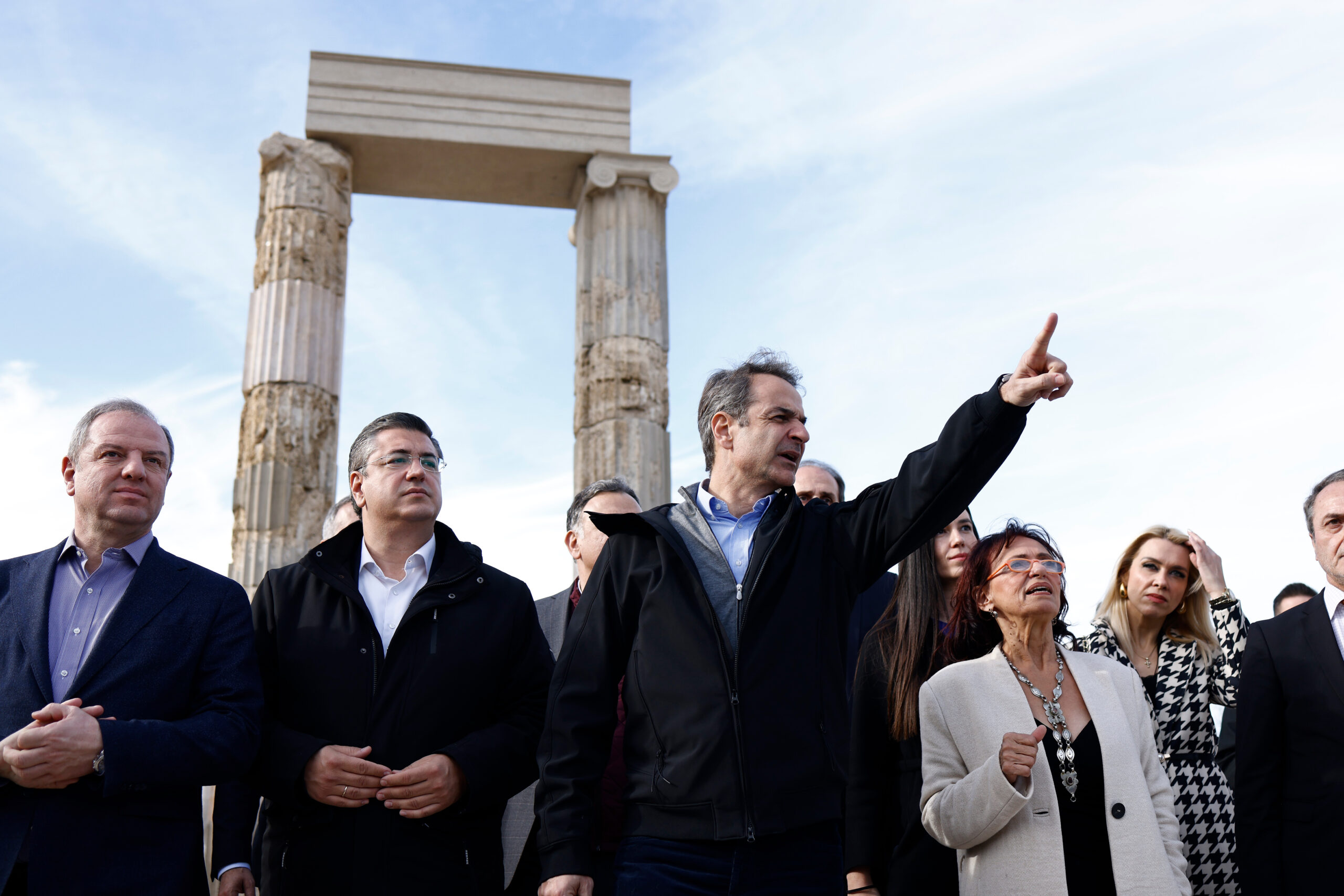 Ο κ. Μητσοτάκης δήλωσε εντυπωσιασμένος από την ξενάγησή του στο αναστηλωμένο ανάκτορο, αναφέρθηκε στον Μανόλη Ανδρόνικο και συνεχάρη την αρχαιολόγο Αγγελική Κοτταρίδη και τους συνεργάτες της.