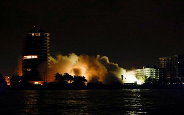 Στην επιχείρηση χρησιμοποιήθηκαν εκρηκτικά για την κατεδάφιση του τελευταίου τμήματος του Champlain Towers South, της 12ώροφης πολυκατοικίας στο Σέρφσαϊντ, αργά την Κυριακή.