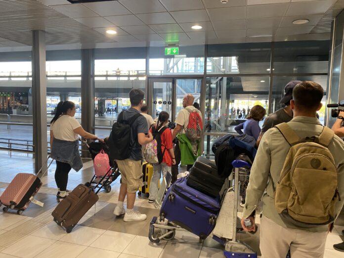 Με χαμόγελα ανακούφισης και φανερά ταλαιπωρημένοι, πρόσφυγες απο το Ισραήλ και επαναπατρισμένοι Έλληνες με τα παιδιά στην αγκαλιά τους, έφτασαν το απόγευμα στο αεροδρόμιο «Μακεδονία, με πτήση που αναχώρησε έπειτα απο πολύωρη καθυστέρηση απο το Τελ Αβίβ.