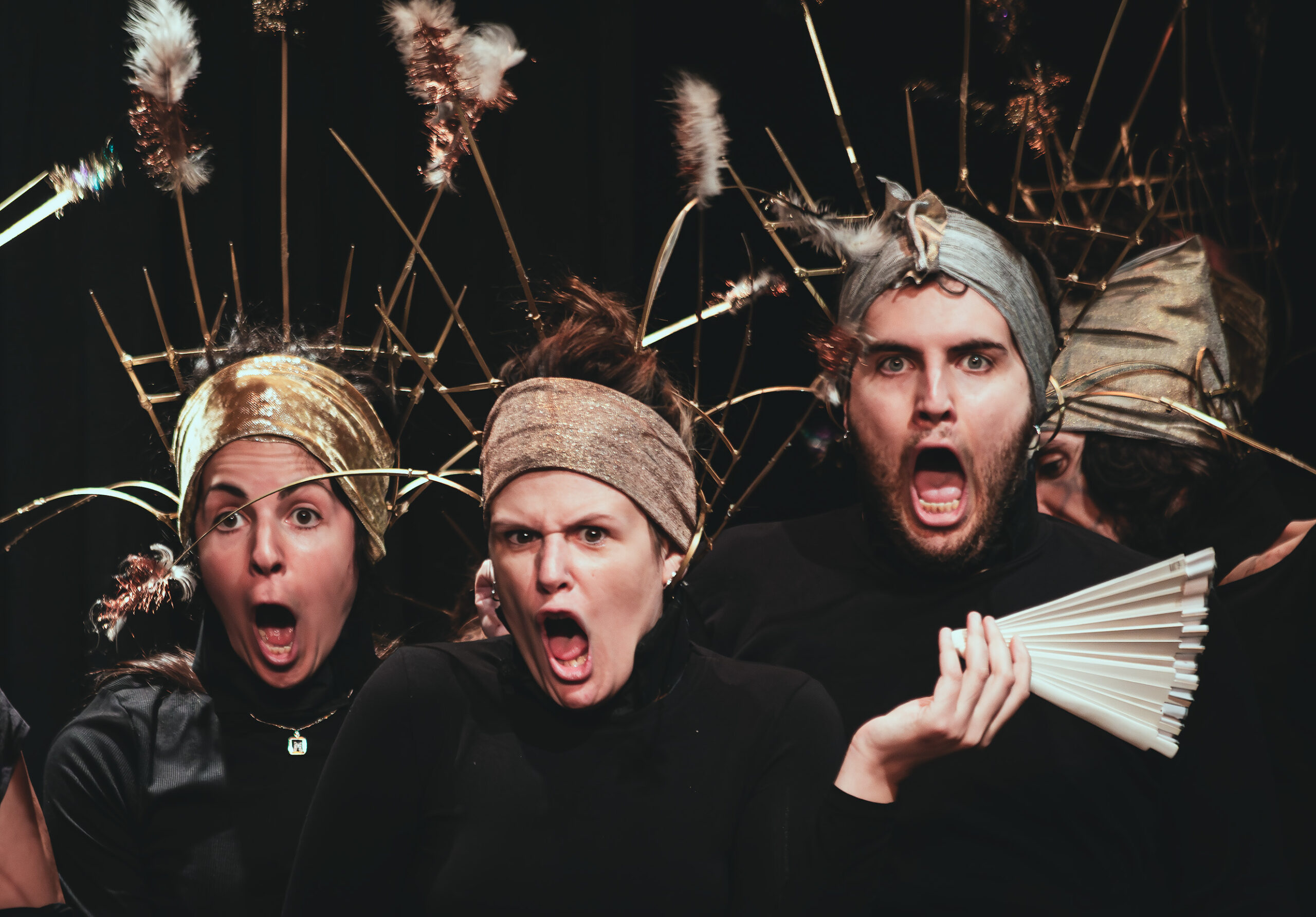 Το αφαιρετικό αλλά εικαστικό σκηνικό της Μαρίας Καραδελόγλου, τα καθημερινά κοστούμια, οι ιδιόμορφες μάσκες και τα περίεργα διαδήματα από υλικά παρατεταμένα, οι ατμοσφαιρικοί φωτισμοί (Σωτήρης Ρουμελιώτης), η μουσική (υπεύθυνος ο πολυπράγμων σκηνοθέτης) και, βεβαίως, οι γεμάτες ενέργεια και ορμή ερμηνείες των οκτώ ταλαντούχων ηθοποιών: Κωνσταντίνος Δράκος Μυσιρλόπουλος, Γιώργος Νέστωρας, Εύα Τσακίρη, Mαρία Φαμιλίτου, Αναστάσης Φιλοξενίδης, Μαρία Κυριακή Φωτιάδου, Μαρία Χασεκίδου, Μέλινα Ψαροπούλου, στήνουν ένα ευφάνταστο παιχνίδι ταύτισης των θεατών με τις ιστορίες τους, αλλά και ανταλλαγής. Ό,τι, δηλαδή, προσφέρει το σωματικό θέατρο και ο αυτοσχεδιασμός.
