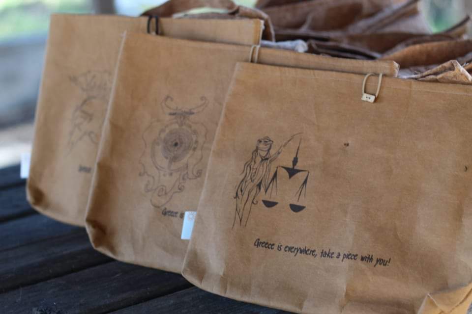 Δεν είναι μόνο ο Ποσειδώνας, η Άρτεμις και οι υπόλοιποι Ολύμπιοι Θεοί που κοσμούν τα προϊόντα, είναι και τα αποφθέγματα των Αρχαίων Ελλήνων φιλοσόφων και τα qr codes που οδηγούν σε χρωμοσελίδες και ιστοσελίδες με πληροφορίες για τον αρχαιοελληνικό πολιτισμό, όπως επισημαίνει η μαθήτρια του ΕΠΑΛ Παναγιώτα Γκαμπλιά. Η Παναγιώτα είναι από τους ενήλικες μαθητές του ΕΠΑΛ και έχει ως στόχο στα 36 της χρόνια να δραστηριοποιηθεί στον χώρο του τουρισμού. «Έναν χρόνο μετά και μέσα από αντίξοες συνθήκες φτιάξαμε προϊόντα που είναι έτοιμα για να κυκλοφορήσουν στο εμπόριο. Σαν να ήμασταν δηλαδή μια κανονική επιχείρηση. Μια συμμαθήτριά μας ανέλαβε το καλλιτεχνικό κομμάτι, ο καθένας μας είχε έναν ρόλο. Χρησιμοποιήσαμε υφάσματα από φελλό και λέξεις παγκοσμίως γνωστές, όπως το Euphoria (ευφορία) για να δείξουμε την οικουμενικότητα του αρχαιοελληνικού πολιτισμού», εξηγεί.