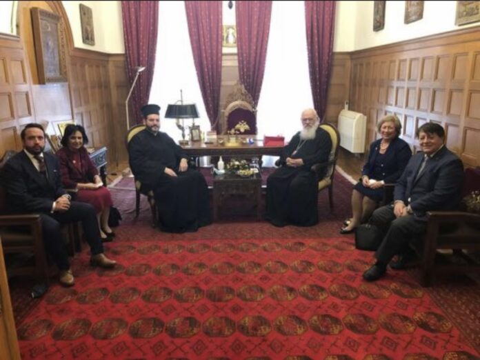 Η αντιπροσωπεία της Αρχιεπισκοπής Αμερικής, στην οποία συμμετέχουν η ταμίας του Αρχιεπισκοπικού Συμβουλίου, Ελέιν ‘Αλεν, και η β’ αντιπρόεδρος του Εθνικού Φιλόπτωχου Ταμείου, Αννίτα Καρταλοπούλου, επισκέφτηκε με την άφιξή της στην Αθήνα τον Αρχιεπίσκοπο Αθηνών και πάσης Ελλάδος Ιερώνυμο προκειμένου να λάβει την ευχή και την ευλογία του.