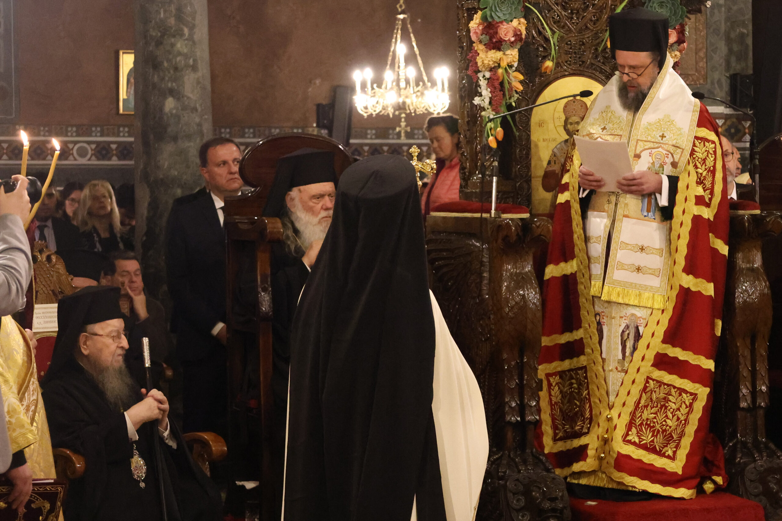 Ο Μητροπολίτης Νεαπόλεως και Σταυρουπόλεως Βαρνάβας, ως αναπληρωτής τοποτηρητής, επέδωσε στον νέο μητροπολίτη της Θεσσαλονίκης, την ποιμαντορική ράβδο ευθύνης, για το νέο του ξεκίνημα. Εκπρόσωπος του Οικουμενικού Πατριαρχείου ήταν ο μητροπολίτης Χαλκηδόνος Εμμανουήλ, ως πνευματικός πατέρας, του έδωσε ακόμη μια ευχή για το νέο του ξεκίνημα, ενώ ο πρώην μητροπολίτης Θεσσαλονίκης ‘Ανθιμος βρισκόταν από νωρίς στον ναό της Του Θεού Σοφίας και στάθηκε στο πλάι του νέου μητροπολίτη.