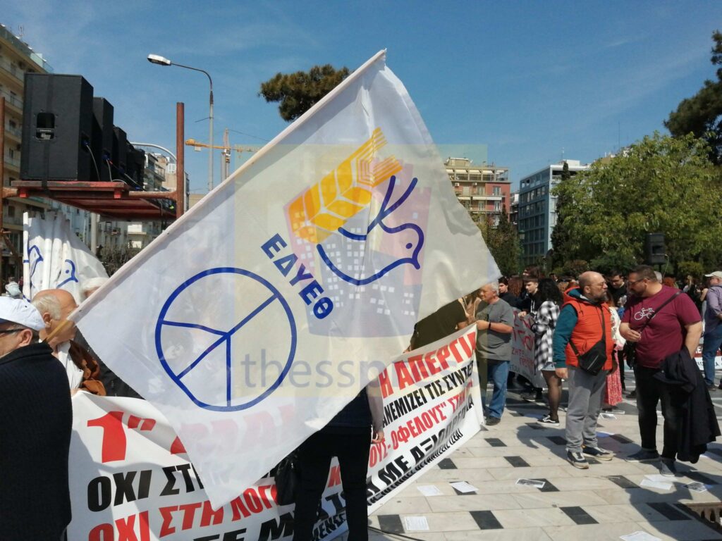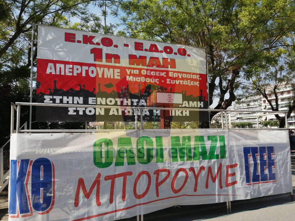 Λίγο μετά τις έντεκα πραγματοποιήθηκε έξω από το Εργατοϋπαλληλικό Κέντρο, η συγκέντρωση, που διοργάνωσαν το ΕΚΘ και η ΕΔΟΘ. Σε αυτήν συμμετείχαν με τα δικά τους ξεχωριστά μπλοκ μέλη και υποψήφιοι βουλευτές του ΣΥΡΙΖΑ και του ΠΑΣΟΚ. Το ΜεΡΑ25 μαζί και δυνάμεις της εξωκοινοβουλευτικής Αριστεράς πραγματοποίησαν συγκέντρωση, σε μικρή απόσταση, στην αρχαία ρωμαϊκή αγορά και στη συνέχεια κινήθηκαν προς τη συγκέντρωση του ΕΚΘ και της ΕΔΟΘ.