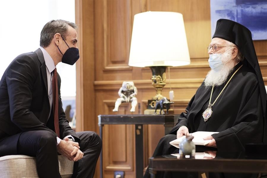 Συνάντηση με τον μακαριώτατο αρχιεπίσκοπο Τιράνων, Δυρραχίου και πάσης Αλβανίας, Αναστάσιο, είχε το μεσημέρι ο πρωθυπουργός, Κυριάκος Μητσοτάκης, στο Μέγαρο Μαξίμου.