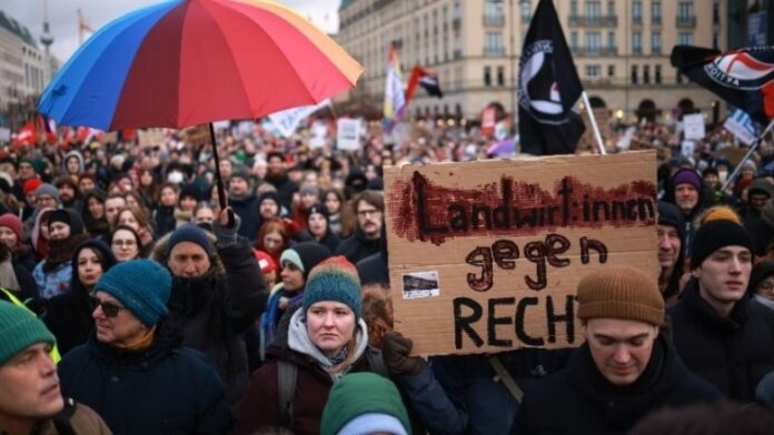 Περισσότερα από 3.000 τρακτέρ, 2.000 φορτηγά και 10.000 άτομα έχουν συγκεντρωθεί στο Βερολίνο για το σημερινό (15/1) συλλαλητήριο, με το οποίο κορυφώνεται η «εβδομάδα δράσης» του αγροτικού κινήματος, το οποίο απαιτεί ακύρωση της σχεδιαζόμενης κατάργησης της επιδότησης στο αγροτικό πετρέλαιο.