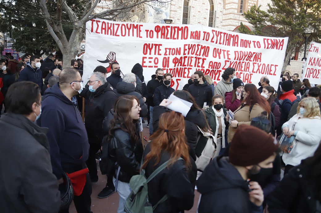 Με κεντρικό πανό “Έξω οι φασίστες-Δολοφόνοι από τα σχολεία και τις γειτονιές μας” και φωνάζοντας αντιφασιστικά συνθήματα, πραγματοποιήθηκε το απόγευμα συλλαλητήριο στη Θεσσαλονίκη.