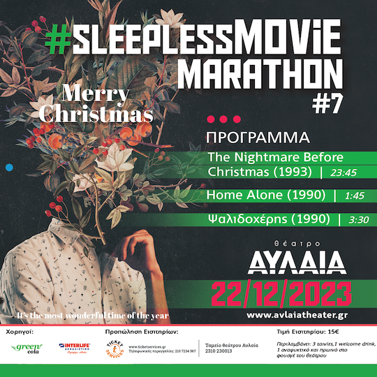 Πρόκειται για το 7ο Sleepless Movie Marathon, έναν ολονύχτιο μαραθώνιο θέασης Χριστουγεννιάτικων ταινιών, που επιστρέφει προβάλλοντας ταινίες της δεκαετίας του ’90, τις οποίες …επιβάλλεται να τις βλέπουμε κάθε χρόνο για να σημάνουν Χριστούγεννα.