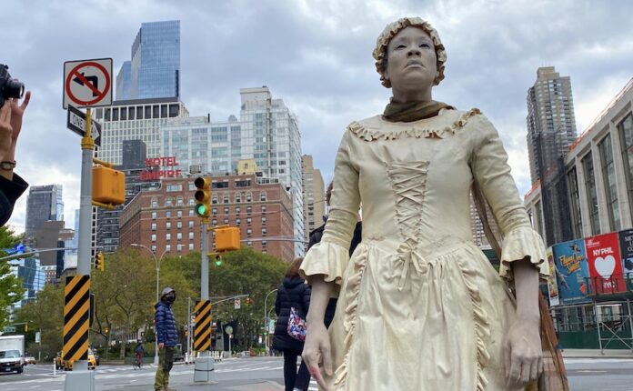 Την περασμένη Τρίτη, ανήμερα των προεδρικών εκλογών στις ΗΠΑ, η καλλιτέχνης Dragonfly τίμησε στη Νέα Υόρκη την κληρονομιά που άφησε η Ona Maria Judge Staines, η οποία δραπέτευσε το 1796 από τη σκλαβιά στην οικία του Τζορτζ Ουάσινγκτον και της συζύγου του, Μάρθα.