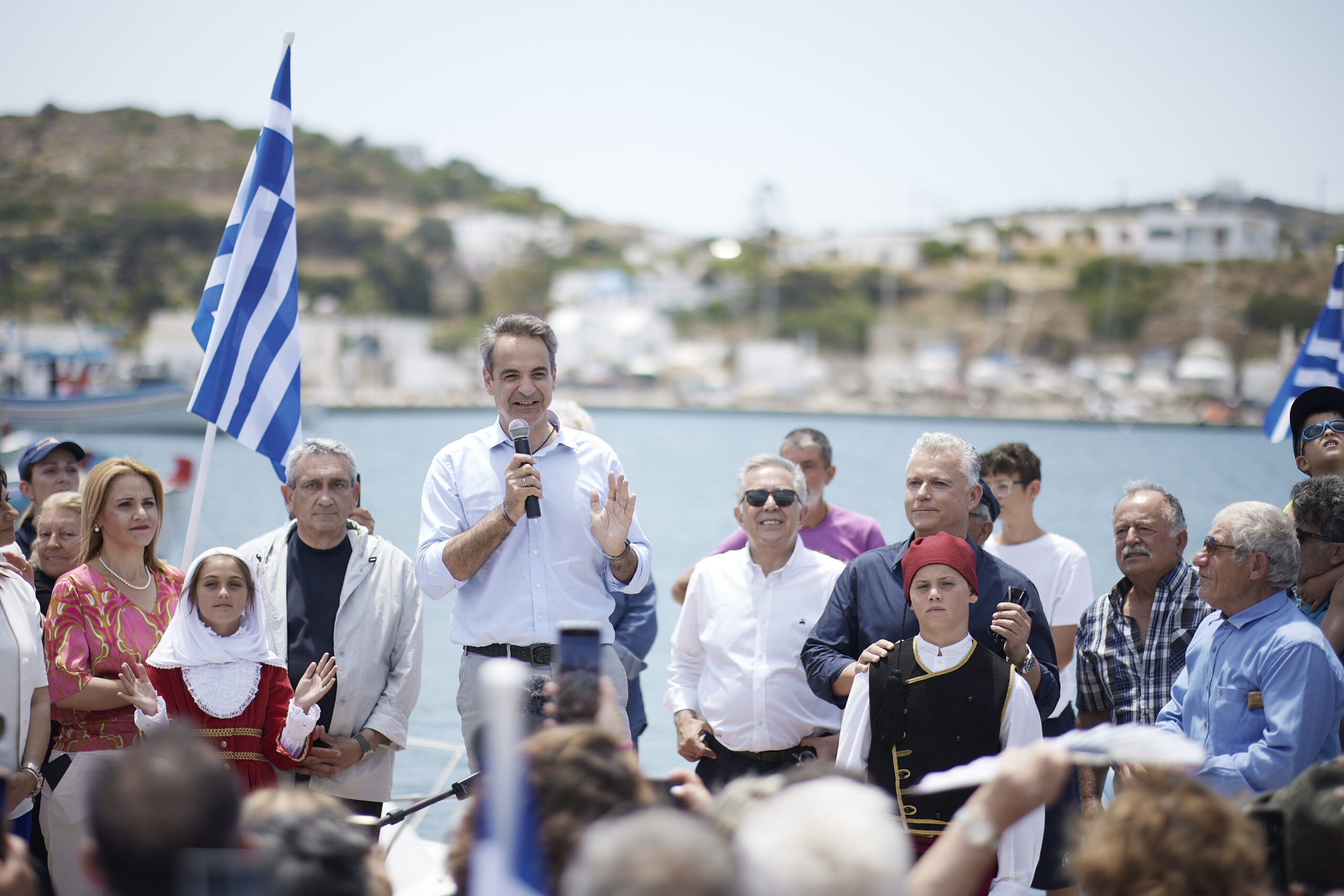 «Για όλα αυτά και πολλά άλλα θα κληθούμε να ψηφίσουμε και πάλι στην κάλπη της 25ης Ιουνίου. Εγώ θέλω και εδώ από τη Λέρο, από τα Δωδεκάνησα, να σας ζητήσω να προσέλθουμε σε αυτή την κάλπη με τον ίδιο ενθουσιασμό. Με ψηλά τις σημαίες της παράταξής μας, με ψηλά τη σημαία της πατρίδας μας, διότι το χρώμα μας είναι το γαλάζιο, που είναι και το γαλάζιο της σημαίας μας, το γαλάζιο του Αιγαίου, το γαλάζιο του ουρανού. Να πετύχουμε τον στόχο να γράφει «5» μπροστά το ποσοστό μας στα Δωδεκάνησα, να εκλέξουμε και τέταρτο βουλευτή. Και θα το πετύχουμε. Και μετά, μην έχετε καμιά αμφιβολία ότι όπως σκύψαμε τέσσερα χρόνια πάνω στα προβλήματα των νησιών, θα εξακολουθούμε να σας φροντίζουμε.