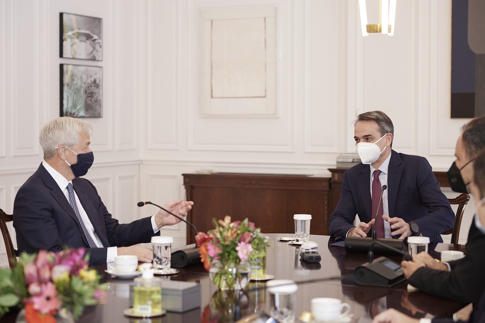 Συνάντηση με τον Πρόεδρο και Διευθύνοντα Σύμβουλο της JPMorgan Chase, Jamie Dimon είχε ο Κυριάκος Μητσοτάκης.
