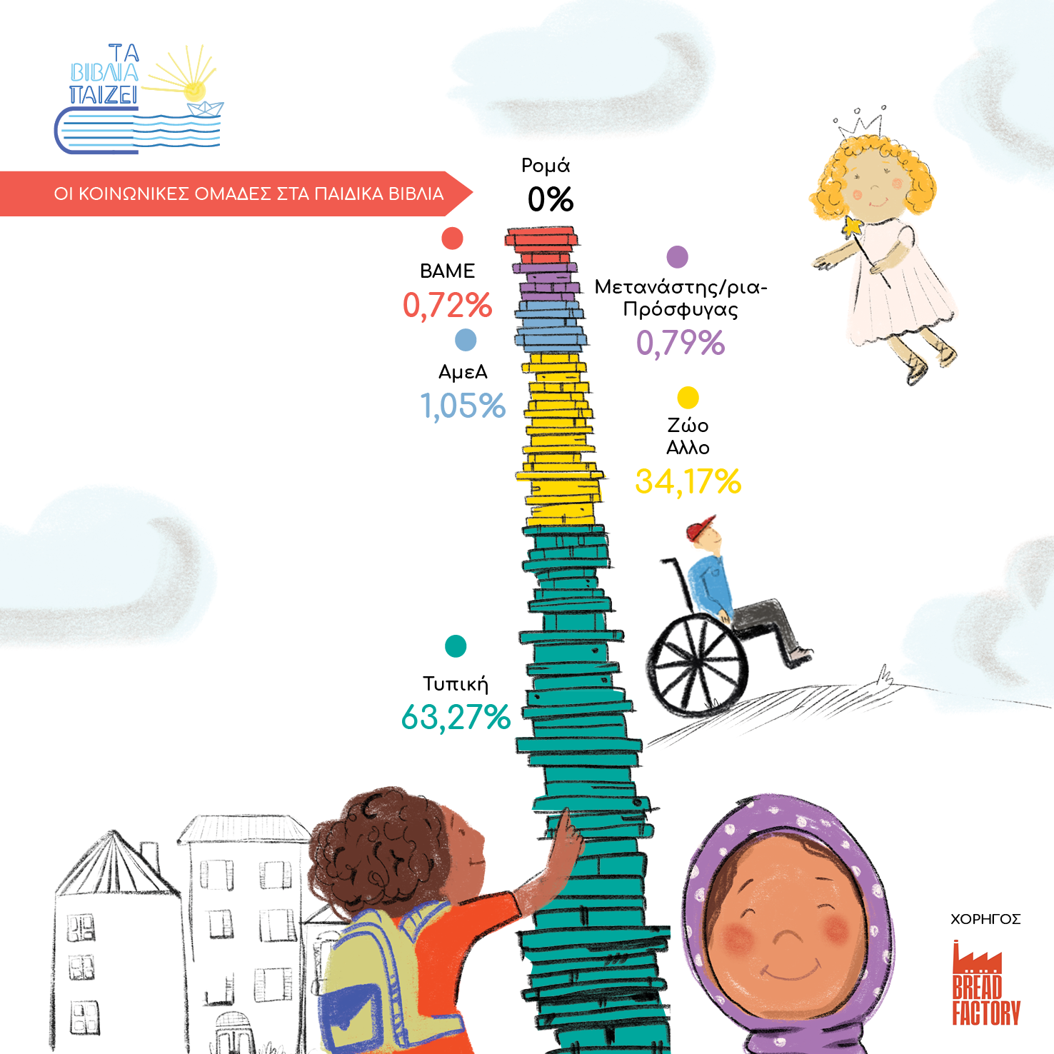 Μόλις το 2,5% των παιδικών βιβλίων που εκδόθηκαν από το 2010 και έπειτα στην Ελλάδα έχουν ως βασικούς χαρακτήρες άτομα με ειδικές ανάγκες, μετανάστες, πρόσφυγες ή Ρομά, όπως προκύπτει από έρευνα.