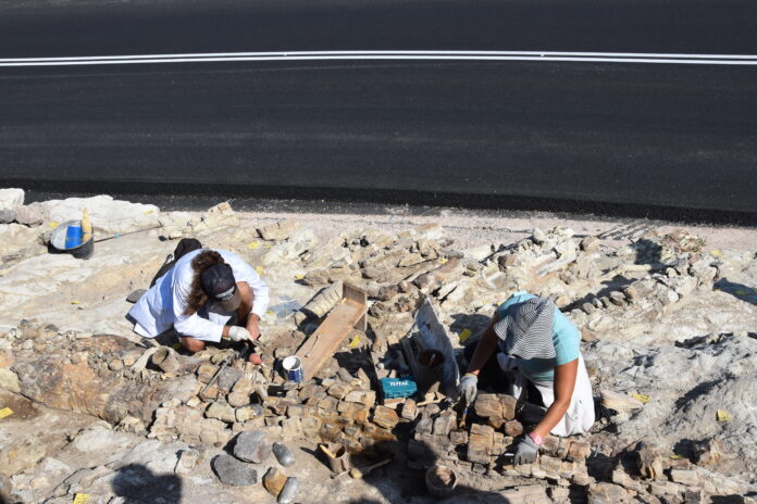 Οι ανασκαφές για τα νέα ευρήματα στον Ακρόχειρα πραγματοποιήθηκαν στο πλαίσιο της Πράξης «Κατασκευή / Αναβάθμιση Οδικού Άξονα Καλλονής Σιγρίου – ΥΠΟΕΡΓΟ 6: Έρευνες και εργασίες απολιθωμάτων».