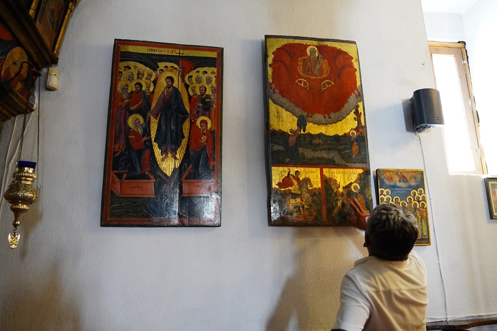 - Συνολικά 15 εικόνες της εκκλησίας είναι κυριλλικής γραφής.