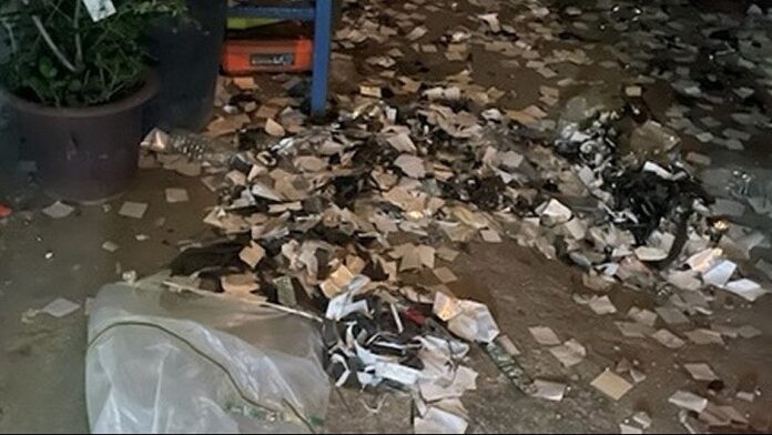 Οι σάκοι που κρέμονται από τα μπαλόνια περιέχουν «κυρίως χαρτί και πλαστικά σκουπίδια», διευκρίνισε η ίδια πηγή.