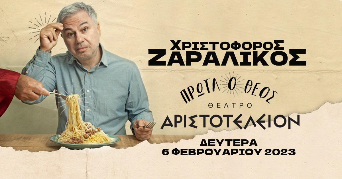Ο Χριστόφορος Ζαραλίκος και ο Πιτσιρίκος συνεργάζονται για τρίτη φορά στο θέατρο επειδή ήταν θέλημα Θεού και θα παρουσιάσουν -πρώτα ο Θεός- στο θέατρο “ΑΡΙΣΤΟΤΕΛΕΙΟΝ” την παράσταση “Πρώτα ο Θεός”.
