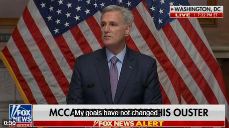 Η αποπομπή του «speaker» χθες –εξέλιξη άνευ προηγουμένου στην αμερικανική πολιτική ιστορία– απειλεί να παραλύσει το νομοθετικό έργο, την ώρα που επαπειλείται εκ νέου shutdown, παράλυση του ομοσπονδιακού κράτους, περί τη 17η Νοεμβρίου, εάν δεν εγκριθεί νέος προσωρινός προϋπολογισμός.