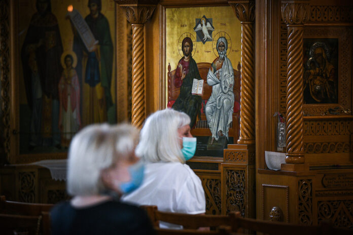 Τούτο και μόνο ως θέαμα προβάλλει αποκρουστικό. Εισέρχονται, λοιπόν, άνθρωποι μασκοφορούντες, ασπαζόμενοι τις εικόνες.