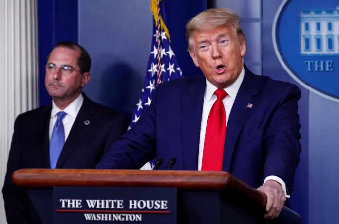 Ο Αμερικανός πρόεδρος ανέστειλε την οικονομική συνεισφορά των ΗΠΑ στον ΠΟΥ στις 14 Απριλίου, κατηγορώντας τον παγκόσμιο οργανισμό για την προώθηση της κινεζικής «παραπληροφόρησης» σχετικά με το ξέσπασμα του κορονοϊού, δηλώνοντας ότι η κυβέρνησή του θα ενεργοποιήσει μία επανεξέταση του ΠΟΥ.