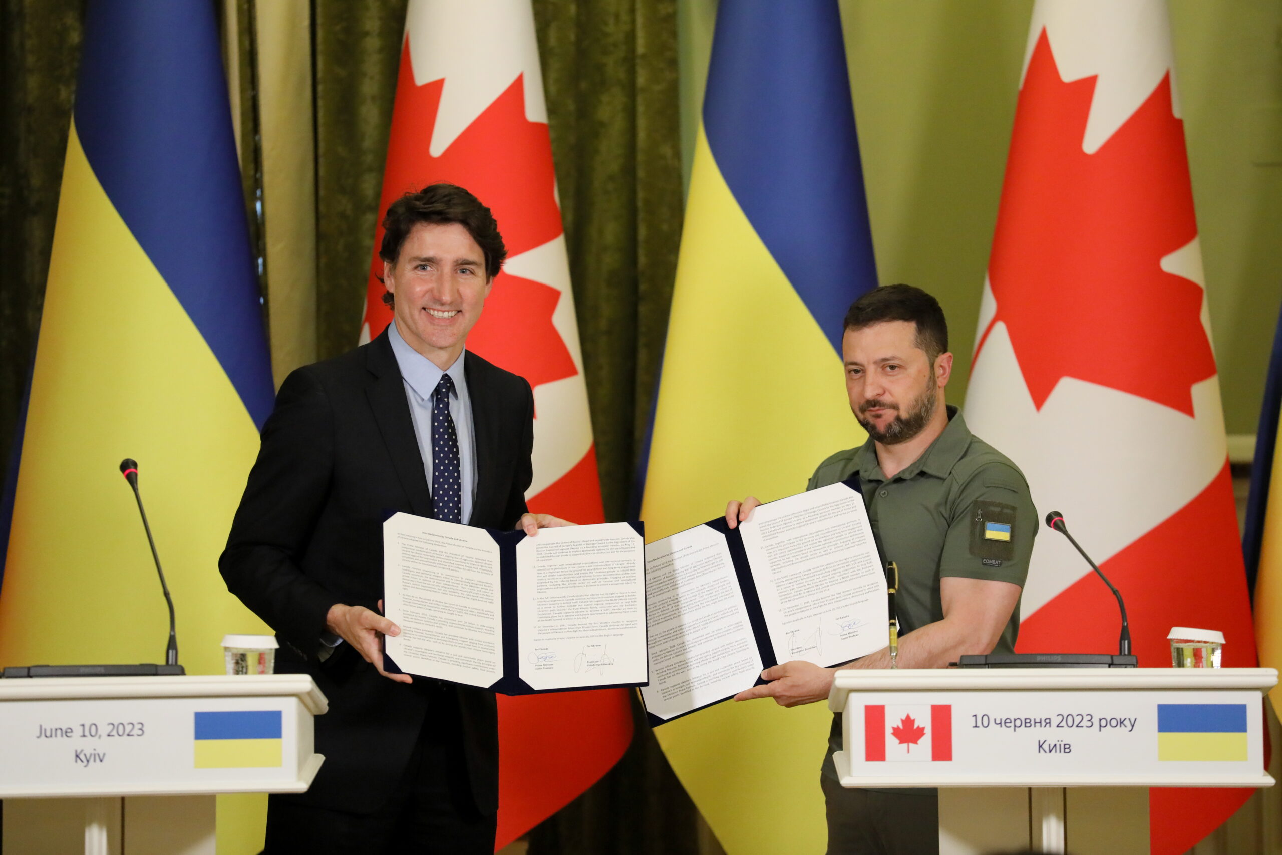 Σε κοινή συνέντευξη Τύπου που παραχώρησε με τον Ουκρανό πρόεδρο Βολοντίμιρ Ζελένσκι, ο Τριντό δήλωσε παράλληλα ότι η καταστροφή του φράγματος Καχόβκα στη νότια Ουκρανία ήταν «άμεση συνέπεια» της ρωσικής εισβολής, χωρίς ωστόσο να κατηγορήσει τη Μόσχα για την έκρηξη που κατέστρεψε αυτό το υδροηλεκτρικό φράγμα στον ποταμό Δνείπερο.