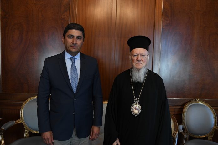 Ο κ. Αυγενάκης, που συνοδεύοταν από την σύζυγό του, Λένα Μπανιά, έγινε δεκτός από τον Οικουμενικό Πατριάρχη Βαρθολομαίο, ο οποίος τον συνεχάρη για την ανάληψη των υπουργικών καθηκόντων του.