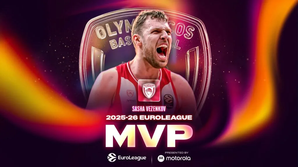 «Ο Σάσα Βεζένκοφ είναι ο αποδέκτης του βραβείου Πολυτιμότερου Παίκτη της EuroLeague για τη σεζόν 2025-26, που απονέμεται από τη Motorola, κερδίζοντας την κορυφαία ατομική διάκριση του πρωταθλήματος, έχοντας οδηγήσει τον Ολυμπιακό Πειραιώς στο καλύτερο ρεκόρ στην κανονική σεζόν και έχοντας πραγματοποιήσει μια από τις πιο ολοκληρωμένες σεζόν της καριέρας του.