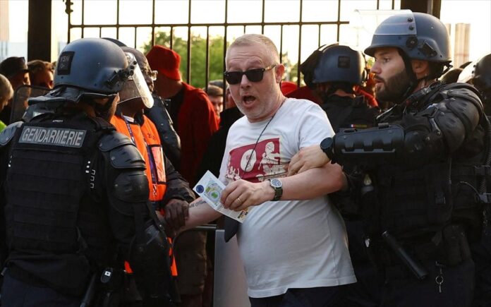 Σαν να μην έφτανε αυτό, οι παρευρισκόμενοι δέχθηκαν από την αστυνομία σπρέι πιπεριού και δακρυγόνα. Η UEFA και οι γαλλικές αρχές κατηγόρησαν τους οπαδούς της Λίβερπουλ για το χάος που ακολούθησε και την καθυστέρηση της έναρξης του αγώνα.