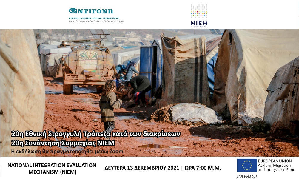 Η «ΑΝΤΙΓΟΝΗ – Κέντρο Πληροφόρησης και Τεκμηρίωσης για το Ρατσισμό, την Οικολογία, την Ειρήνη και τη Μη Βία» διοργανώνει την 20η Εθνική Στρογγυλή Τράπεζα κατά των Διακρίσεων, ένα θεσμό που διοργανώνει με επιτυχία τα τελευταία δεκαεννιά χρόνια. Η συγκεκριμένη διοργάνωση αποτελεί και την 20η Εθνική Συνάντηση Συμμαχίας του ευρωπαϊκού προγράμματος ‘National Integration and Evaluation Mechanism (ΝΙΕΜ)’.