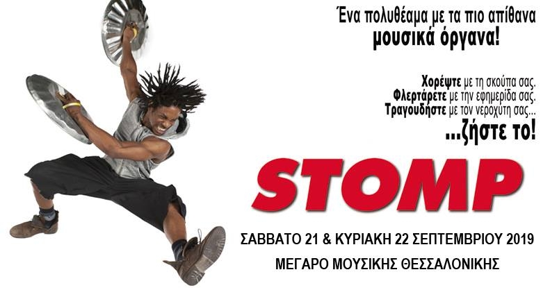 Το show των STOMP είναι ένας συνδυασμός κρουστών, ρυθμικής κίνησης και οπτικής κωμωδίας και πρόκειται για την πιο ευφάνταστη επινόηση στον χώρο των μουσικών τεχνών. Οι STOMP καταργούν τον διαχωρισμό υψηλής και λαϊκής τέχνης, προκαλούν αβίαστα το γέλιο και είναι φοβερά ευρηματικοί.