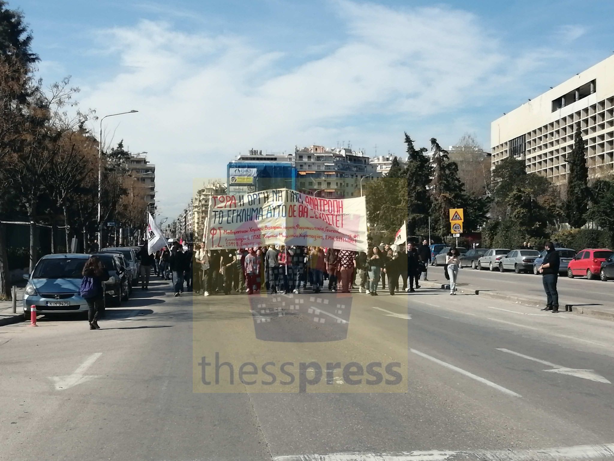 Με δύο πορείες στο κέντρο της Θεσσαλονίκης συνεχίστηκαν σήμερα οι κινητοποιήσεις των φοιτητών για το δυστύχημα στα Τέμπη.