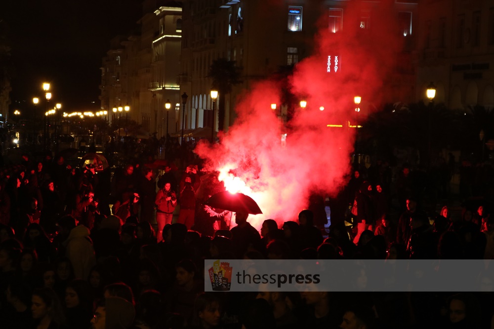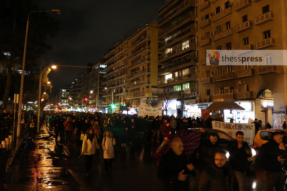 Εκεί, πραγματοποιήθηκε ολιγόλεπτη στάση και εν συνεχεία, η πορεία κινήθηκε στο αντίθετο ρεύμα της Εγνατίας, για να καταλήξει στις 20:30 στο Άγαλμα Βενιζέλου.