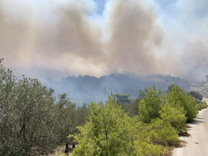 Μάλιστα το μέτωπο προς τον Πλατανιστό, που προέκυψε από αναζωπύρωση, πήρε μεγάλες διαστάσεις, χωρίς να μπορέσουν οι επίγειες δυνάμεις να το συγκρατήσουν και κατευθύνθηκε προς το χωριό Πλατανιστός και το Παλοχώρι.