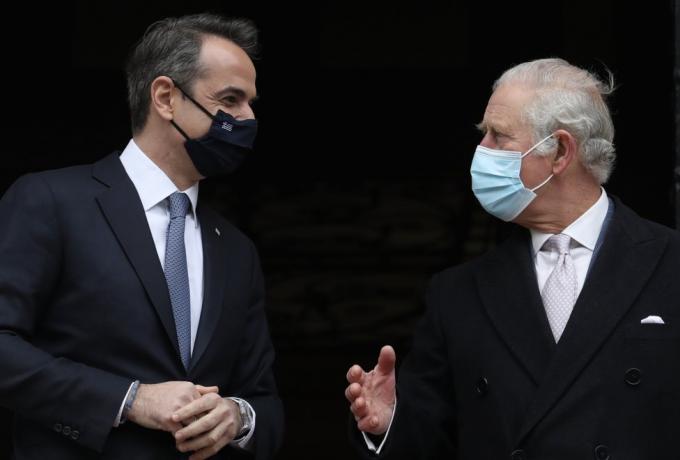 Για περισσότερη από μισή ώρα είχαν τετ α τετ ο Κυριάκος Μητσοτάκης με τον πρίγκιπα Κάρολο, ο οποίος δεν σταμάτησε να υπενθυμίζει την ελληνική του καταγωγή, να μιλά άπταιστα ελληνικά και να συγκινεί με το «χαίρε ω χαίρε ελευθεριά».