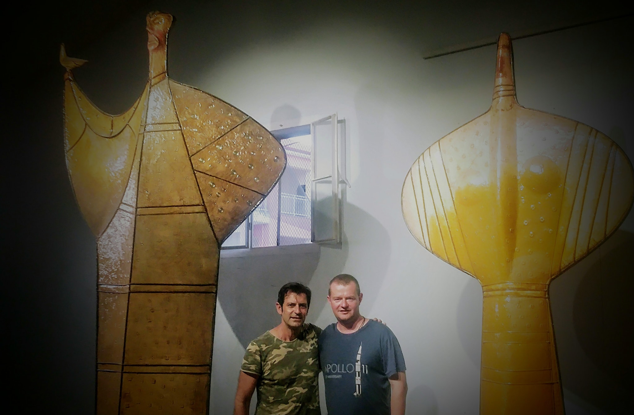Ο ουκρανικής καταγωγής μεγιστάνας του διαστήματος δεν επισκέπτεται την έκθεση μόνο μία φορά, αλλά επιστρέφει την αμέσως επόμενη ημέρα. «Του έκανε φοβερή εντύπωση η έκθεση και ζήτησε να πάρει τρία από τα γλυπτά στις ΗΠΑ. Είναι ένας άνθρωπος που έχει δει πολλά, με κορεσμένο μάτι, και όπως μου είπε, δεν περίμενε να συναντήσει κάτι τέτοιο σε έναν μικρό οικισμό. Μιλήσαμε αρκετά, ήταν θερμός και οικείος και μου είπε σε κάποια στιγμή: “Μy job is Space. Your job is the inner” (σε ελεύθερη μετάφραση: “η δουλειά μου είναι το Διάστημα, ο κόσμος εκεί έξω, η δική σου δουλειά είναι ο εσωτερικός κόσμος”)» λέει ο Μιχάλης Μουστάκας.