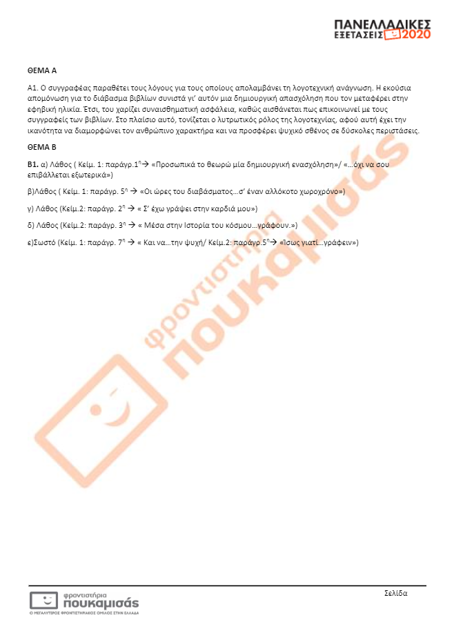 Τις απαντήσεις στα θέματα της Νεοελληνικής Γλώσσας και Λογοτεχνίας στα οποία διαγωνιστηκαν σήμερα οι υποψήφιοι των πανελληνίων εξετέσεων δίνουν στο News24/7 καθηγητές από τα φροντιστήρια Πουκαμισάς.