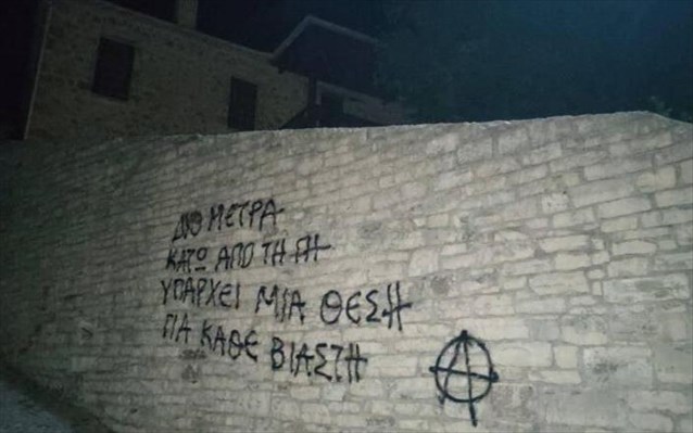 Συνθήματα κατά των βιαστών έγραψε ομάδα αντιεξουσιαστών έξω από το εξοχικό σπίτι του πρόσφατα αποφυλακισμένου ηθοποιού και σκηνοθέτη Πέτρου Φιλιππίδη στους Κουκλιούς Ιωαννίνων.