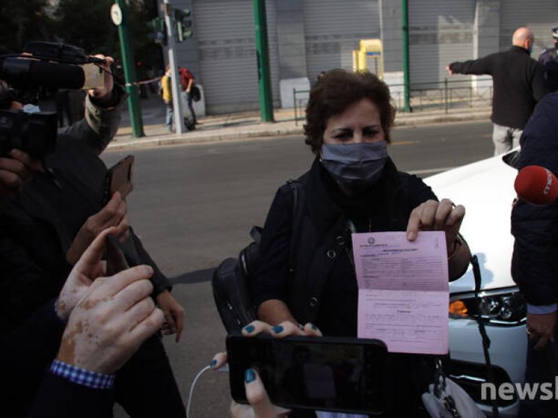 Οι αστυνομικοί την πλησίασαν, με την ίδια να τους εξηγεί ότι έχει στείλει μήνυμα (στον κωδικό 6), πως φορούσε μάσκα και πως ήταν μόνη.