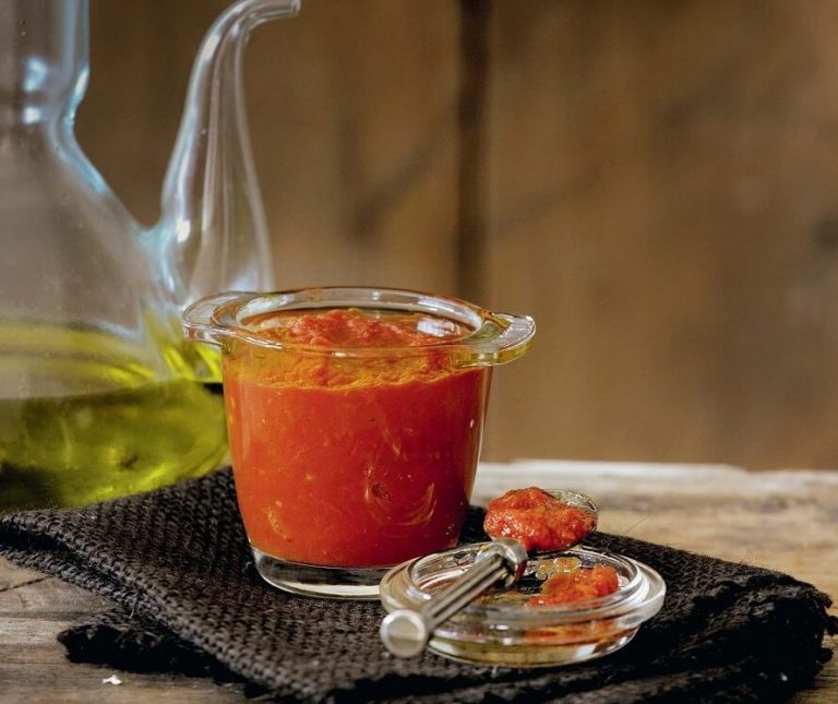Αλέθουμε τις ντομάτες καλά σε πουρέ, τον οποίο βάζουμε σε μία βαθιά κατσαρόλα με χοντρή βάση. Η κατσαρόλα πρέπει να είναι μεγάλη, γιατί φουσκώνει και χύνεται.