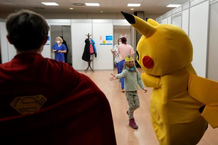 Καθώς τα παιδιά ηλικίας 5-11 ετών μπορούν πλέον να εμβολιάζονται, μεταμφιεσμένα μέλη του προσωπικού ενός από τα μεγαλύτερα κέντρα εμβολιασμού στην τσεχική πρωτεύουσα ανέλαβαν να βοηθούν τα παιδιά που έφθαναν για να κάνουν το εμβόλιο.