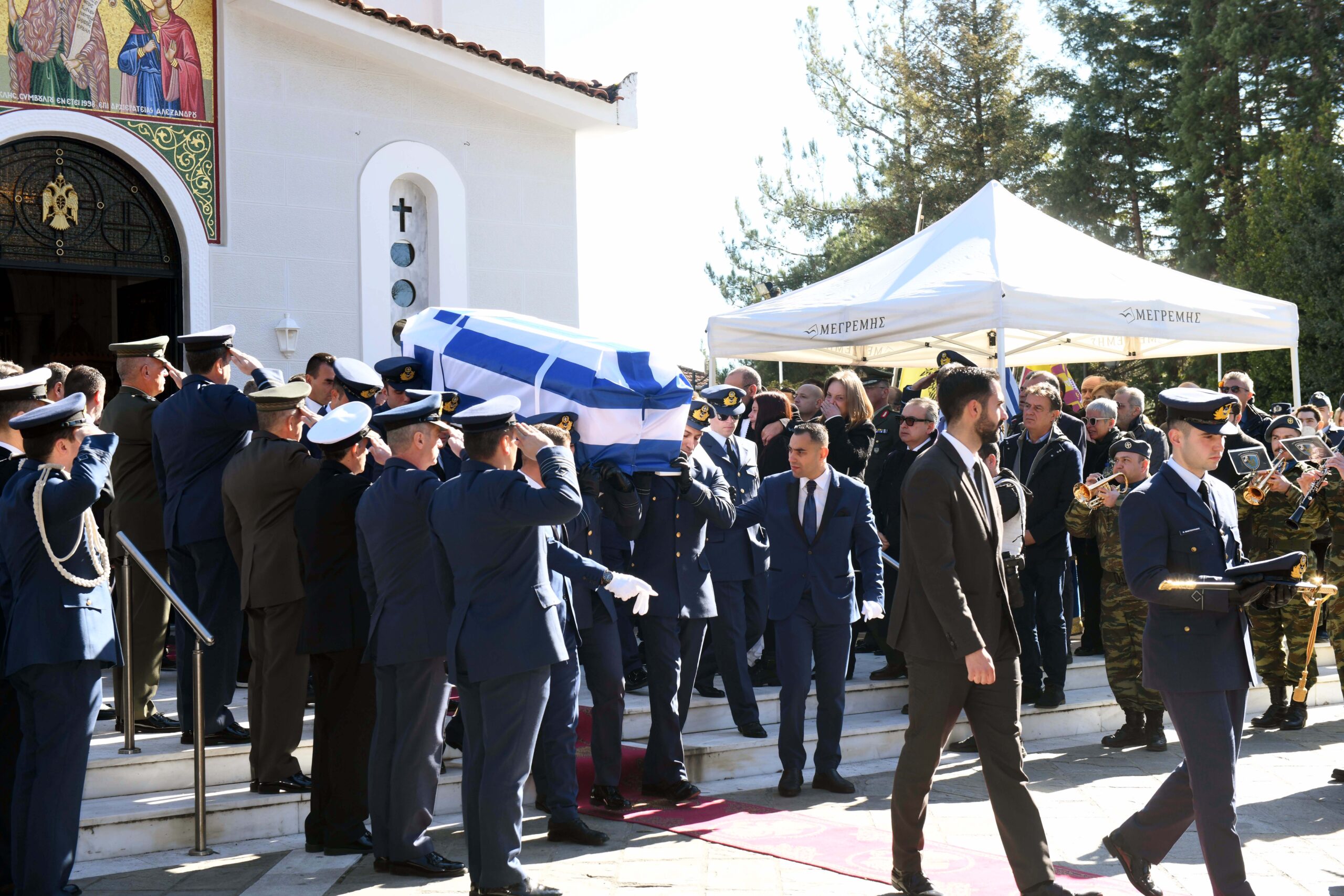 Πλήθος κόσμου, φίλοι και συγγενείς του υποσμηναγού ακολούθησαν την πομπή από τον Ιερό Ναό Προφήτη Ηλία στην Τρίπολη, όπου νωρίτερα έλαβε χώρα η εξόδιος ακολουθία, έως το χωριό Πικέρνι για την ταφή.