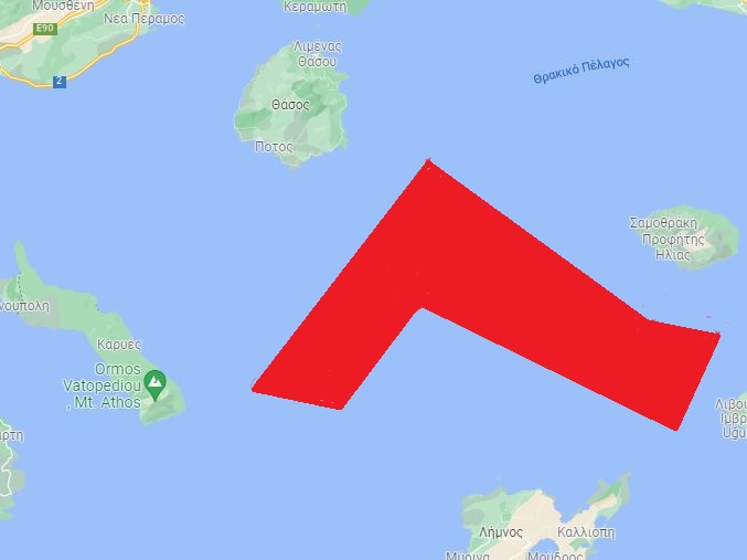 Η δεύτερη NAVTEX αφορά περιοχή στο Θρακικό Πέλαγος και φαίνεται αναλυτικά στον χάρτη: