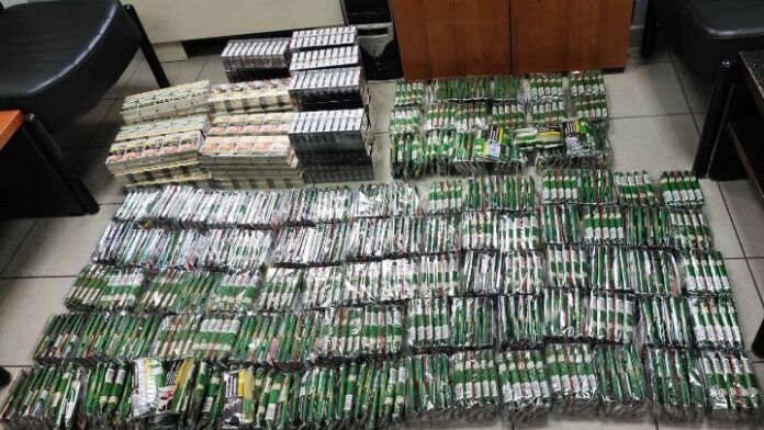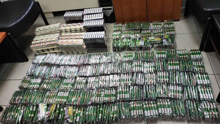 Πρόκειται για έναν αλλοδαπό άνδρα και μία αλλοδαπή γυναίκα οι οποίοι, όπως διαπιστώθηκε σε έλεγχο που πραγματοποιήθηκε στις αποσκευές τους, μετέφεραν από κοινού συνολικά 440 πακέτα τσιγάρα και 500 συσκευασίες καπνού, για τα οποία δεν είχαν καταβληθεί οι νόμιμοι φόροι και δασμοί.