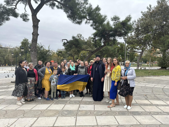 Mε την ευχή “ειρήνη στον κόσμο!” προσέρχεται στην συζήτησή μας σ ένα γκρουπ τριάντα γυναικών από την Ουκρανία, ο ιερέας Βίκτωρ Ομπντάρ. Την ώρα που οι άντρες πίσω στην πατρίδα πολεμούν στο μέτωπο, οι γυναίκες, (σύζυγοι, μανάδες, αδερφές), επισκέπτονται οργανωμένα στην Ελλάδα για να προσευχηθούν στους εδώ τόπους προσκυνήματος, για την τελική νίκη στον πόλεμο κατά των Ρώσων και την επικράτηση μόνιμης ειρήνης.
