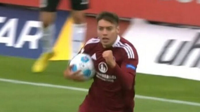 Ο νεαρός φορ, που δόθηκε δανεικός από τον ΠΑΟΚ, στην εκτός έδρας αναμέτρηση με την Ουλμ ισοφάρισε στο 64ο λεπτό (στο τελικό 1-2) και στις καθυστερήσεις του αγώνα αποβλήθηκε με απευθείας κόκκινη κάρτα.
