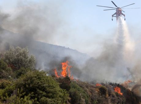 Σύμφωνα με την Πυροσβεστική η φωτιά εκδηλώθηκε στις 14.15 το μεσημέρι και δεν απειλείται το μοναστήρι του Αγίου Γεωργίου ‘Αρμα που βρίσκεται εκεί.