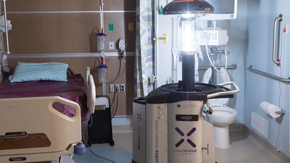 Το ρομπότ LightStrike της εταιρείας ιατρικού εξοπλισμού Terumo εκπέμπει υπεριώδες φως σε μήκος κύματος 200 έως 315 νανομέτρων, το οποίο απολυμαίνει κρεβάτια, πόμολα και άλλες επιφάνειες. Μετά από ακτινοβόληση δύο έως τριών λεπτών οι παθογόνοι μικροοργανισμοί έχουν υποστεί αρκετή βλάβη για να αδρανοποιούνται ή να καταστρέφονται.