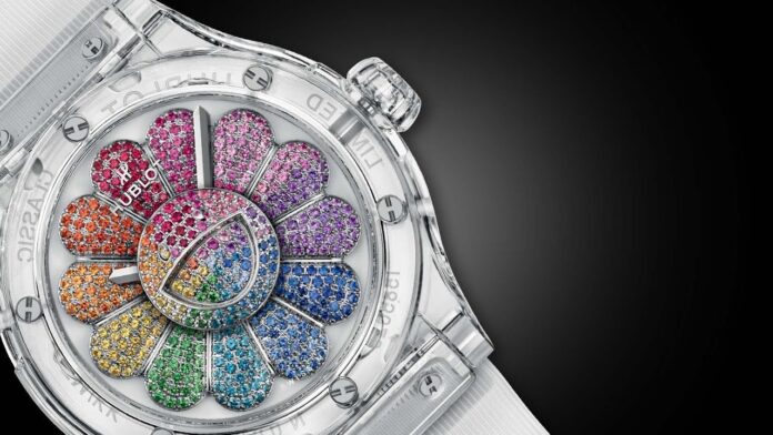 Ο Murakami μετέφρασε το χαμογελαστό λουλούδι του, που είναι και το σήμα κατατεθέν του, σε ένα φάσμα 384 πολύτιμων λίθων, στους οποίους περιλαμβάνονται ρουμπίνια, αμέθυστοι, τσαβορίτες και ροζ, μπλε, κίτρινα και πορτοκαλί ζαφείρια, όλα μέσα σε μια πάχους 45 χιλιοστών πλήρως διαφανή κάσα από κρυστάλλους ζαφειριού του οίκου Hublot. Τα 12 πέταλα του χαμογελαστού λουλουδιού περιστρέφονται ανεξάρτητα όταν ο χρήστης φορά το ρολόι στον καρπό του.