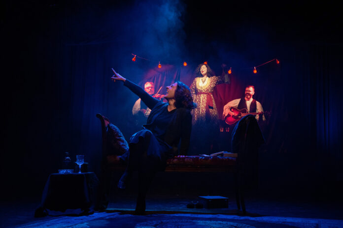 Τα τραγούδια της παράστασης ερμηνεύει επί σκηνής η Αποστολία Γκούτη